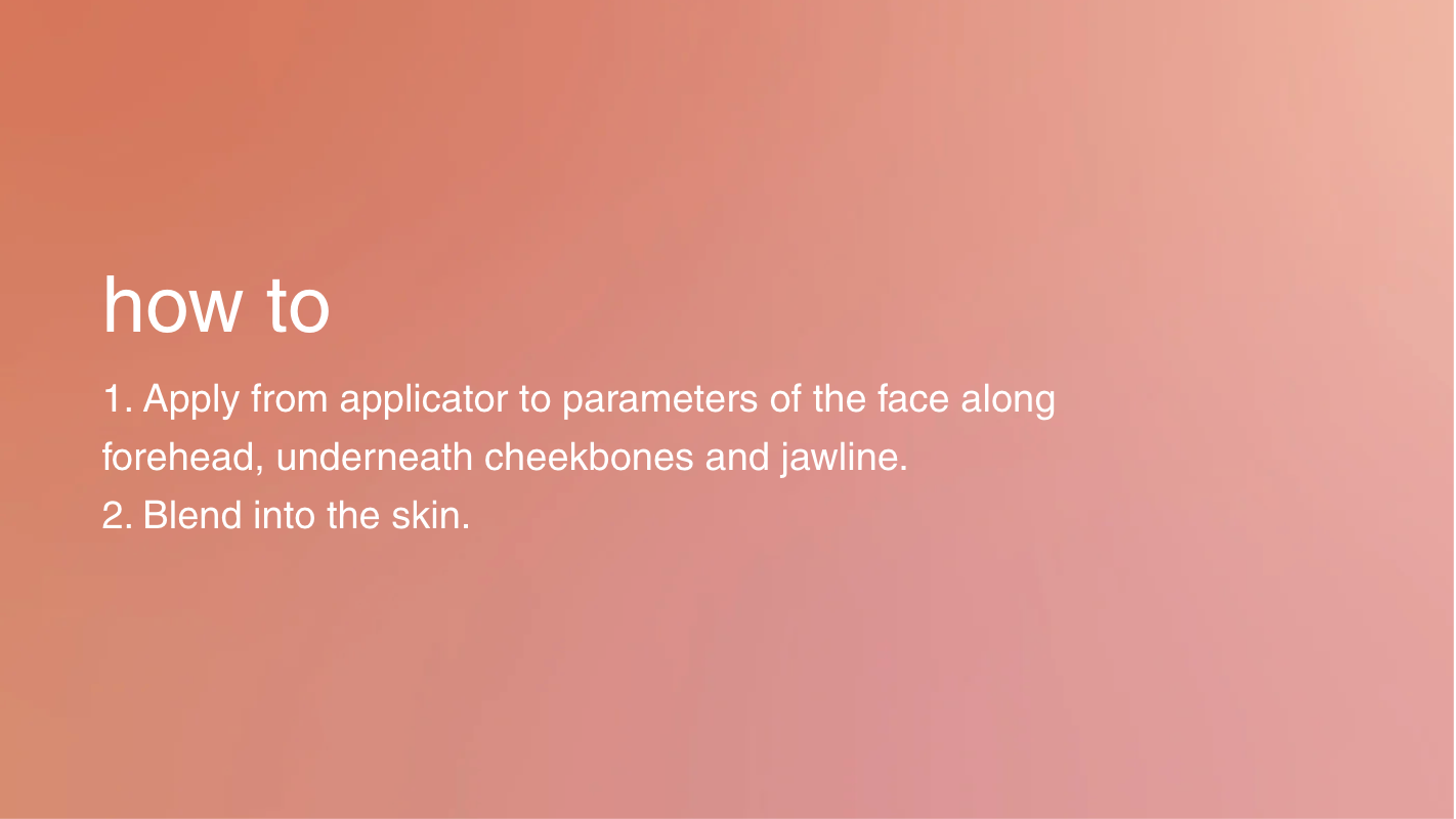 Apply to desired areas where the sun naturally kisses the complexion – typically the cheekbones, nose and temples – and gently blend with fingers, makeup brush or beauty sponge. Can be used over makeup or on bare skin to bring easy light and definition to the face.