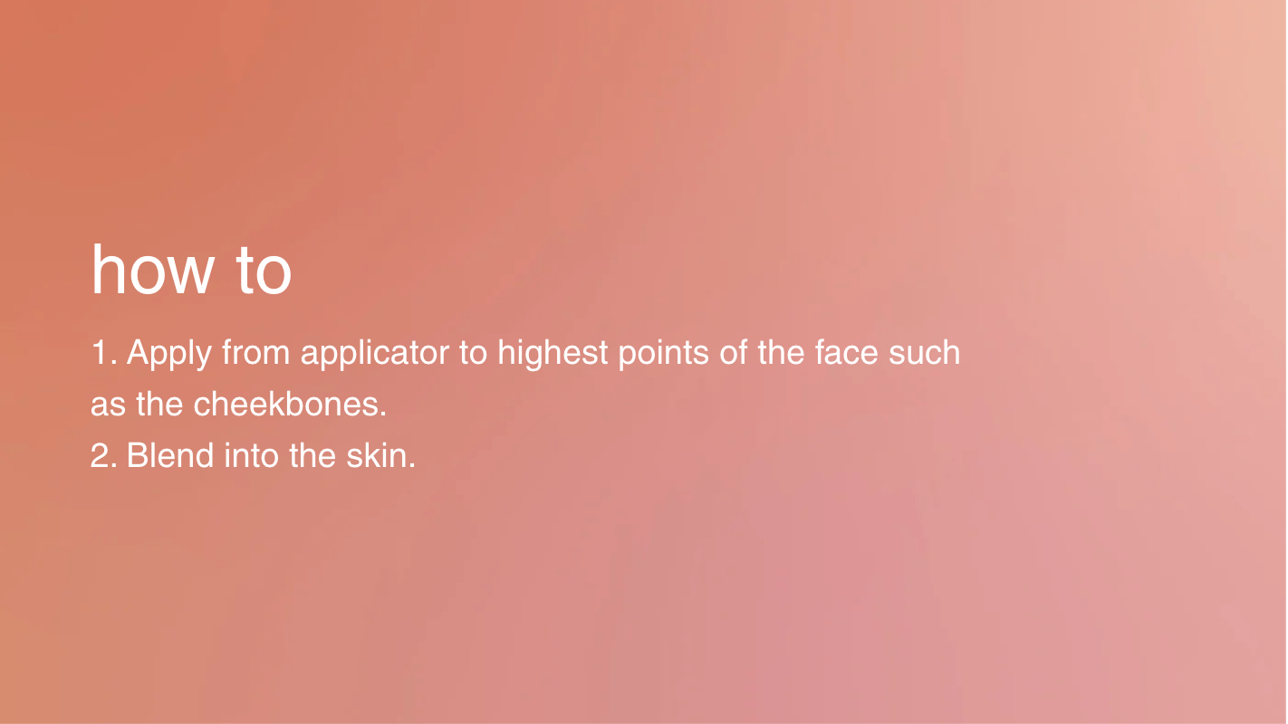 Apply to the high points of the face and areas desiring light – typically along the top of the cheekbones, nose tip, cupid’s bow and eyelids – and gently blend with fingers, makeup brush or beauty sponge. Can be used over makeup or on bare skin to bring easy light and definition to the face.