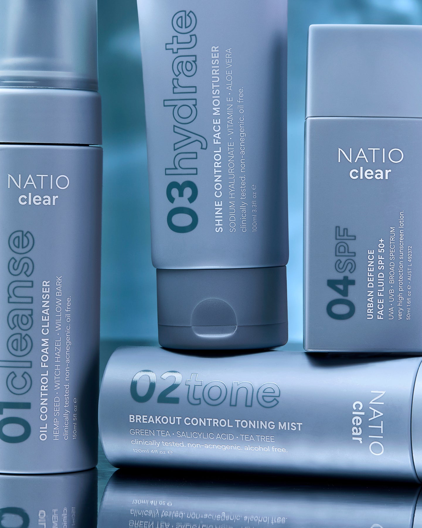 Green Tea, Aloe, Tea Tree, Cucumber and Witch Hazel.